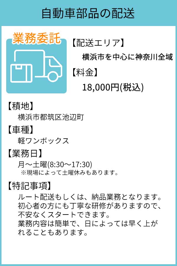 未経験の方でも普通自動車免許(AT限定も可)を所持していれば働くことができます。基本は軽バン車両を使用するので軽自動車が運転できれば問題なく働くことができます。