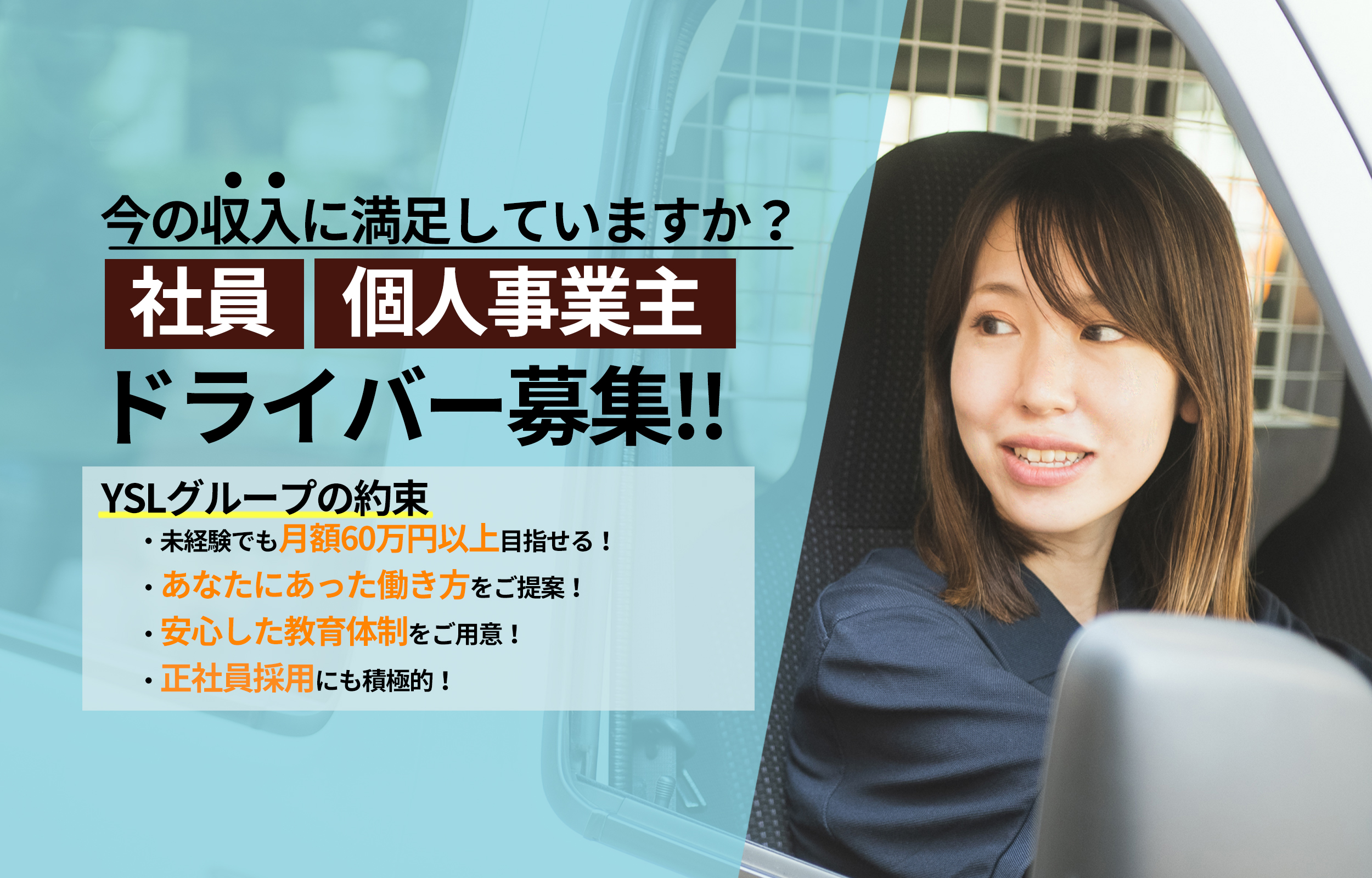 YSLの制度のおかげで安心して宅配ドライバーとして主婦の私でも開業することができました。