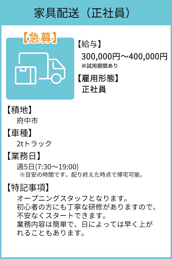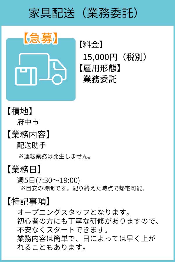 その他配送案件も多数ご用意しております。